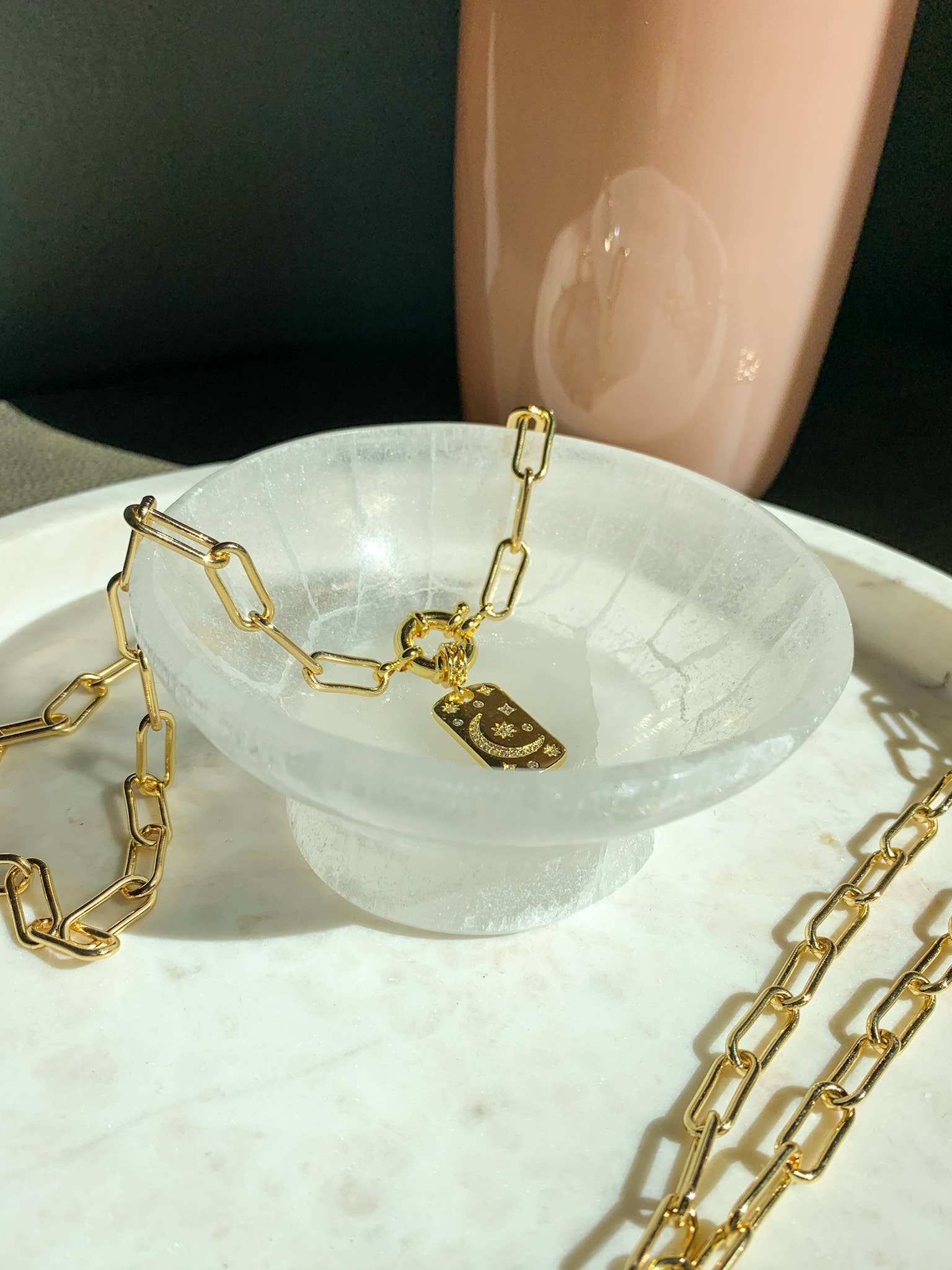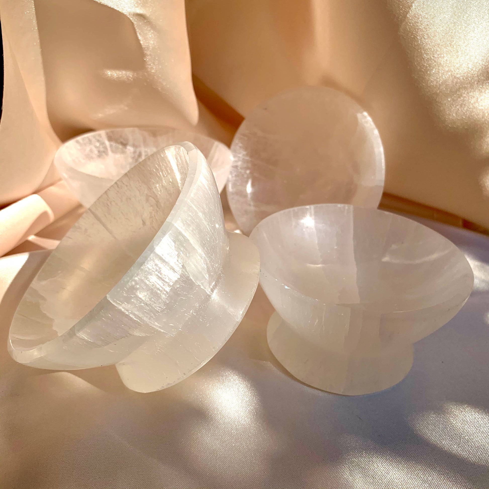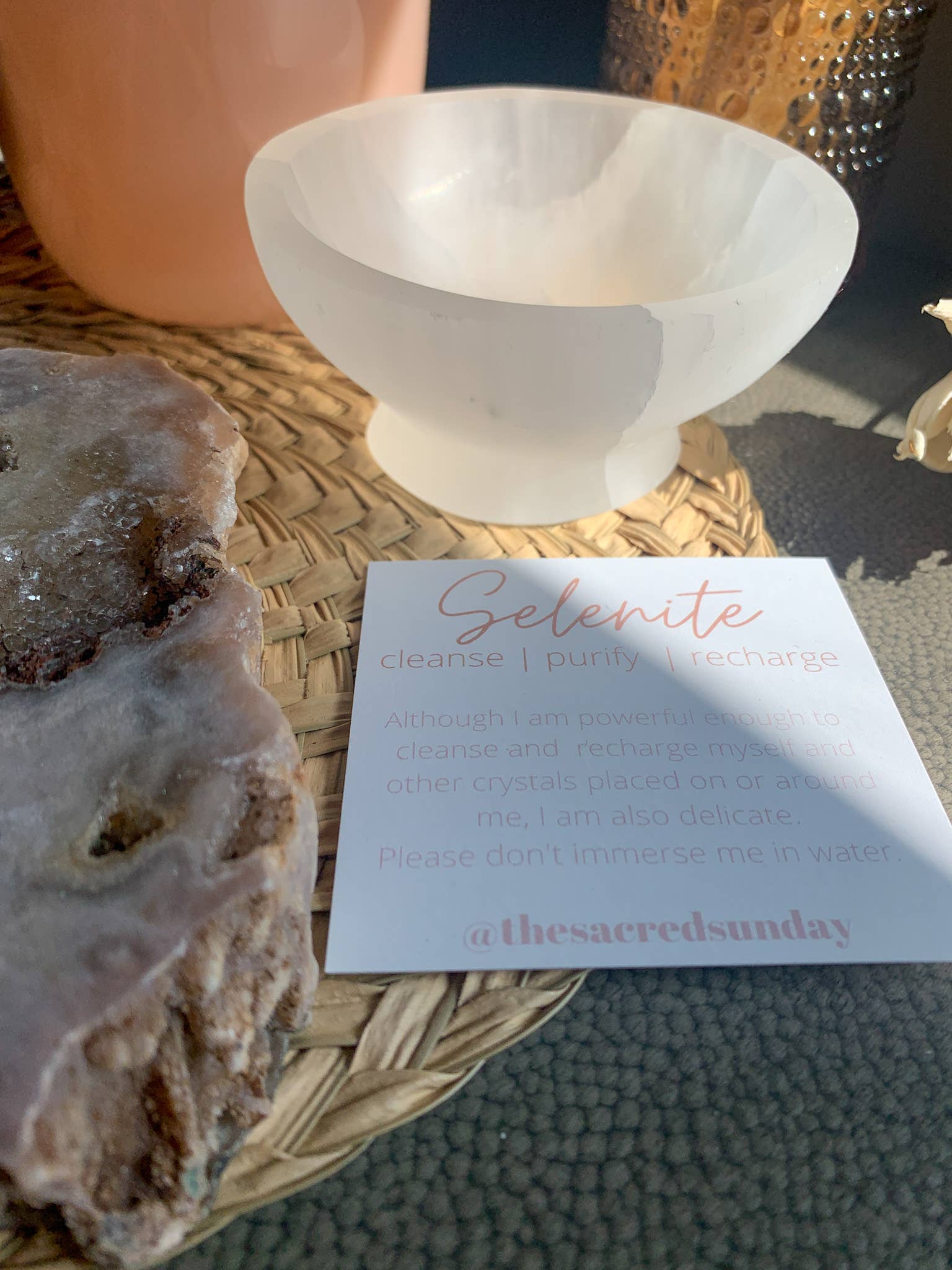 Cleanse, charge and amplify your crystals with this handcrafted selenite charging bowl. Selenite is unlike any other crystal as it doesn’t need to be charged. It will cleanse, charge and amplify all crystals set upon it. Make it easy to charge your everyday crystal jewelry by placing this bowl on your bedside table.