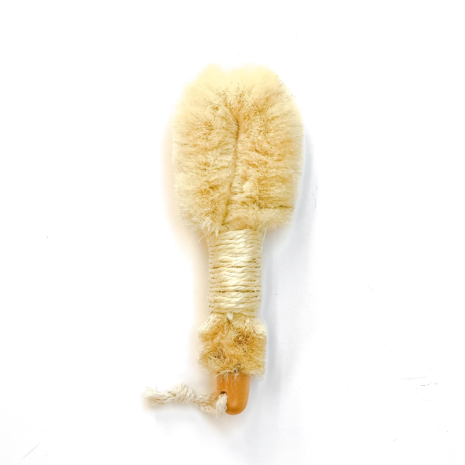 Dry brushing body buffers unite! This 9 in luxe skin smoothing Palm Bristled Dry Brush is unlike any other. And beautiful accessory for any bathroom counter in between uses.