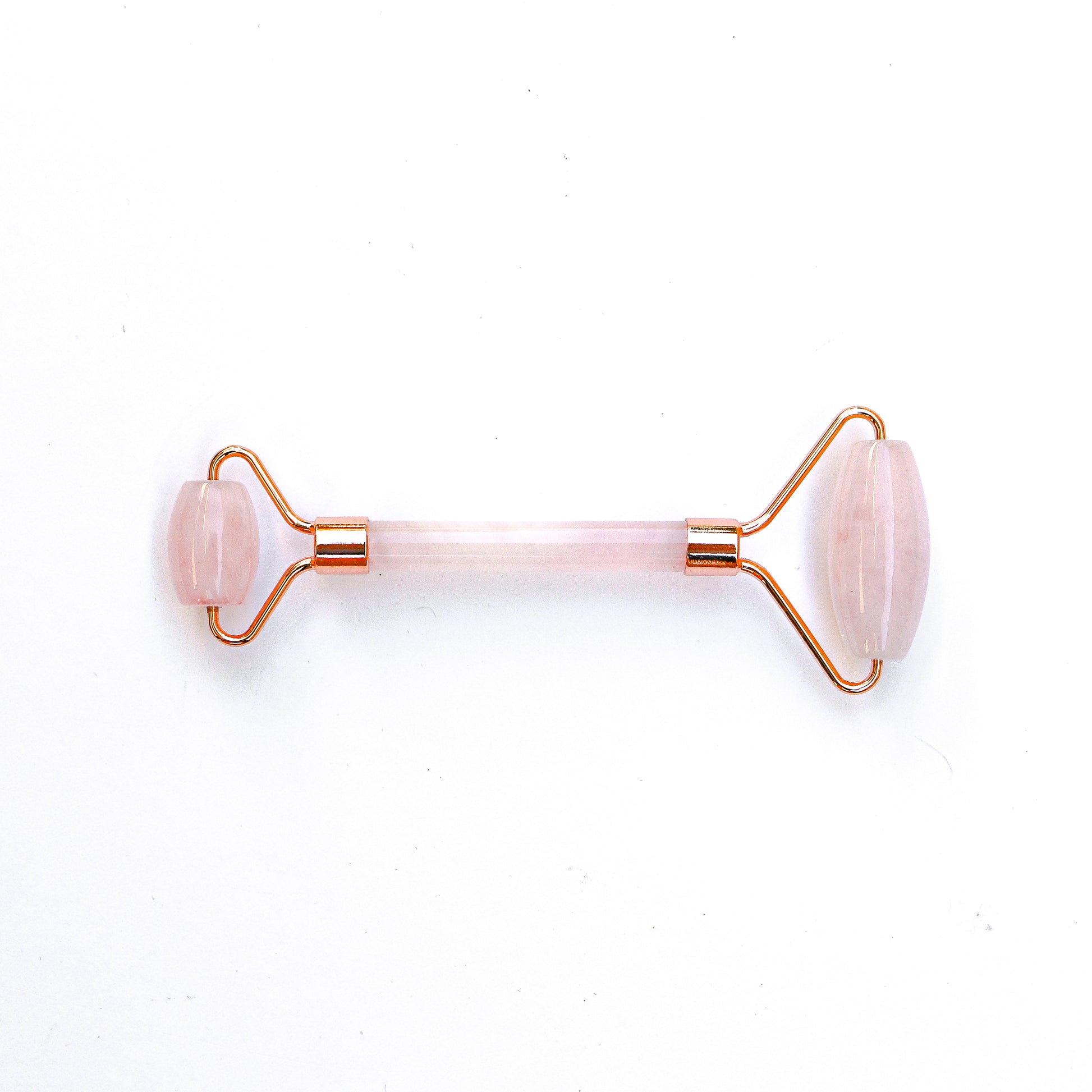 Pure rose quartz facial roller with beautiful rose gold hardware. Enjoy a lovely facial massage while simultaneously reducing puffiness and dark eye circles, even skin tone, improve facial circulation, repair skin elasticity and tighten pores amongst other benefits. Use after applying your favorite Facial Oil to maximize their benefits.