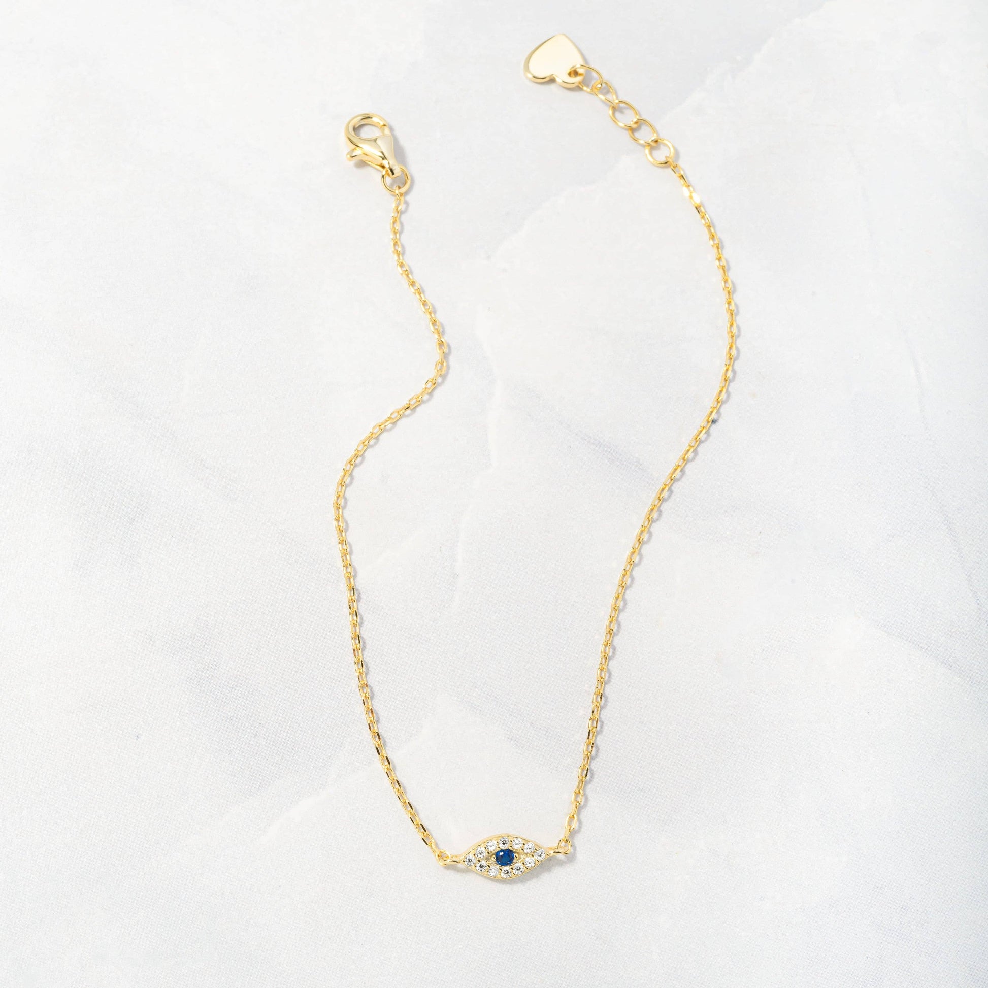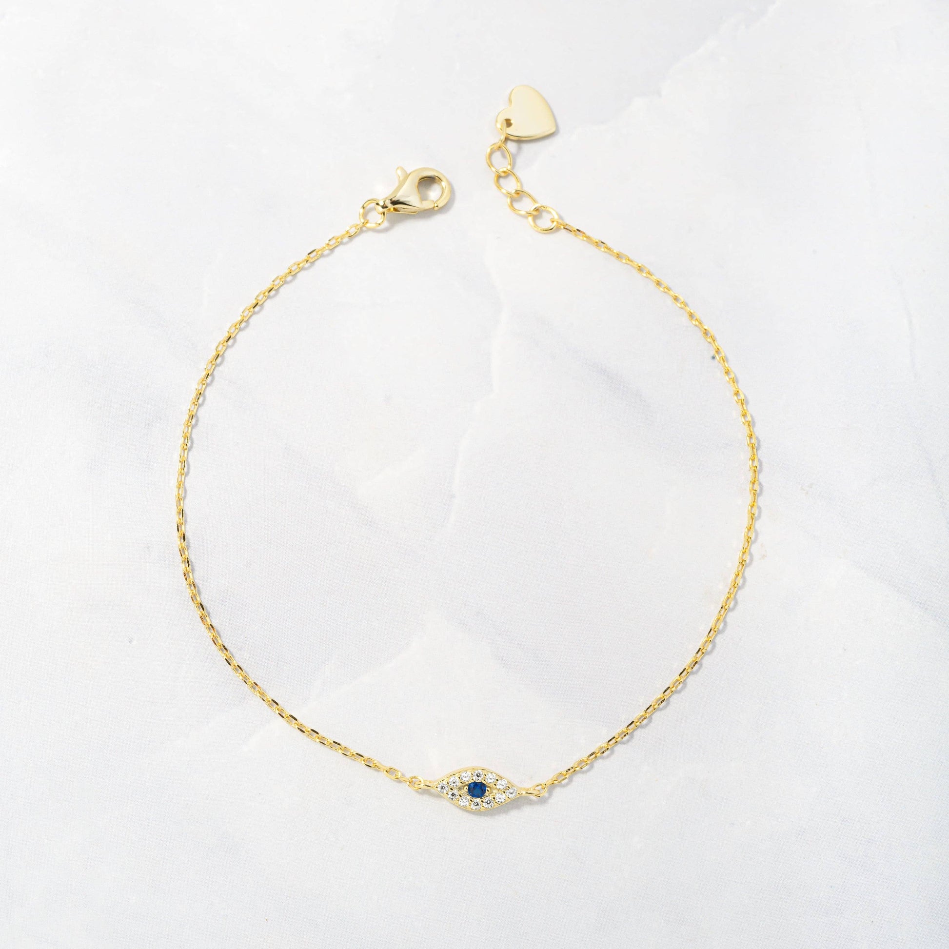 Made with a thick plating of 14k Gold over 925 Sterling Silver, beautifully designed 4mm Evil Eye Charm, cz stones & a lobster clasp closure.