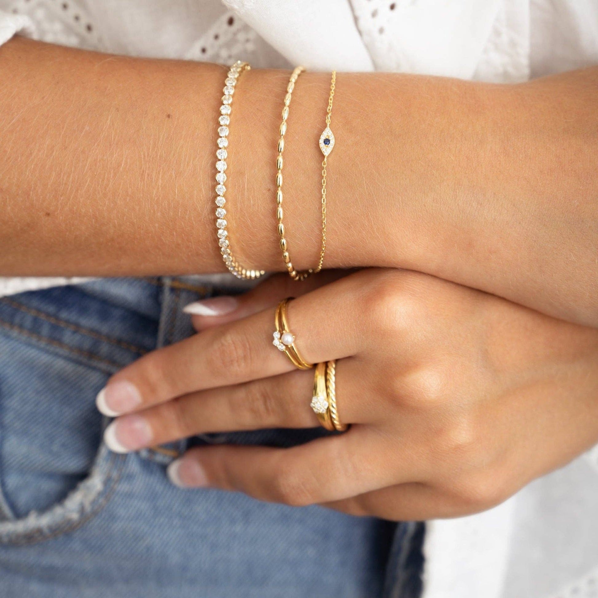 Protect your energy and elevate your style. This dainty & minimalist evil eye bracelet is great for stacking or yo wear on it's own!